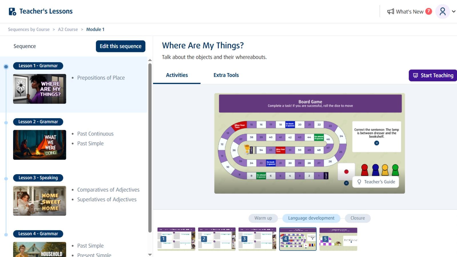 - My Sequences: área onde o professor cria e organiza sequências personalizadas de Lessons.
